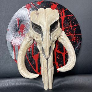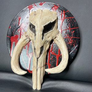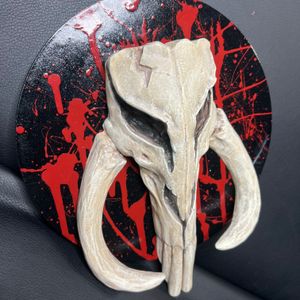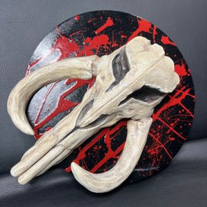 1 savesThis is a hand painted 3-D printed Mythosaur skull mounted to a handmade and painted wooden wall plaque. Completely original one of a kind piece. I have included a custom designed and 3-D printed shelf stand if you’d rather set it on a shelf rather than hanging on the wall. It measures 10.5” tall and the wall plaque is a 9” wood circle.