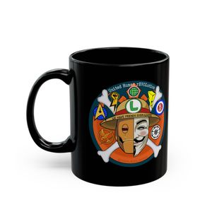 0 savesSlip into your morning ritual with this glossy black ceramic mug that carries a bold, colorful United Human rEVOLution emblem made up of several anti-fascist pop culture icons. The design pops against the deep black surface, bringing an artsy, slightly rebellious energy to coffee, tea, or a late-night cocoa. It feels grounded — a solid, weighty mug with a comfortable C-shaped handle that fits easily in hand. Use it at your desk while sketching ideas, on the couch during an evening of music and podcasts, or as part of a laid-back ritual before heading out. The vibrant print keeps its edge through microwave and dishwasher use, so the look stays vivid without extra fuss. This mug matches someone who loves expressive, statement-making pieces that blend everyday practicality with a creative spark.