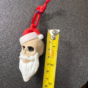 0 savesThis is a licensed Hex 3d Santa skull 3D printed multicolor ornament printed in red, white and black PLA, the bone color is a wood PLA. Ribbon color may vary. It is about 3 inches tall.